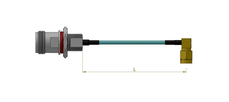 N F bulkhead mounted to SMA R/A M solder with Lmm.085 semi-flex cable